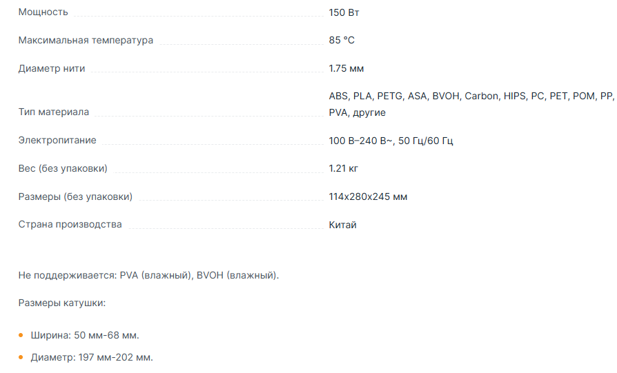 | Тип материала | PLA, PETG, BVOH, Carbon, PPS, PVA, TPU, другие |