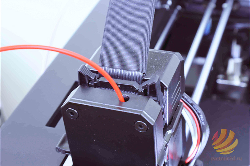 Новая конструкция экструдера, с двумя подающими шестернями, увеличивает стабильность подачи прутка в экструдер, что положительно сказывается на качестве печати. А встроенная камера позволяет записывать и просматривать процесс печати. Как мы смогли убедиться, данный 3D принтер способен работать со всеми самыми интересными тапами пластиков, используемых в 3D печати. Причём, благодаря раздельной комплектации, можно не переплачивать, если вы планируете печатать только PetG и PLA.