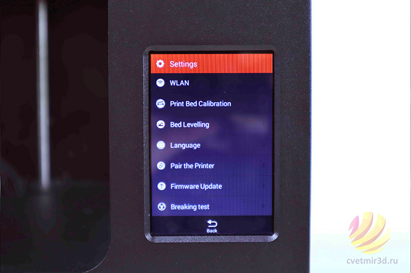 Как мы все с вами знаем перед началом печати принтер необходимо откалибровать. Тут компания Wanhao постаралась, и в GR2 предусмотрены функции, значительно облегчающие процесс, наглядно демонстрируя на дисплее, что и в какой последовательности необходимо делать. Это первый принтер подобного ценового сегмента, в котором реализована столь удобная функция. За это отвечают, как раз два пункта меню, которые мы пропустили. Теперь рассмотрим их подробнее.