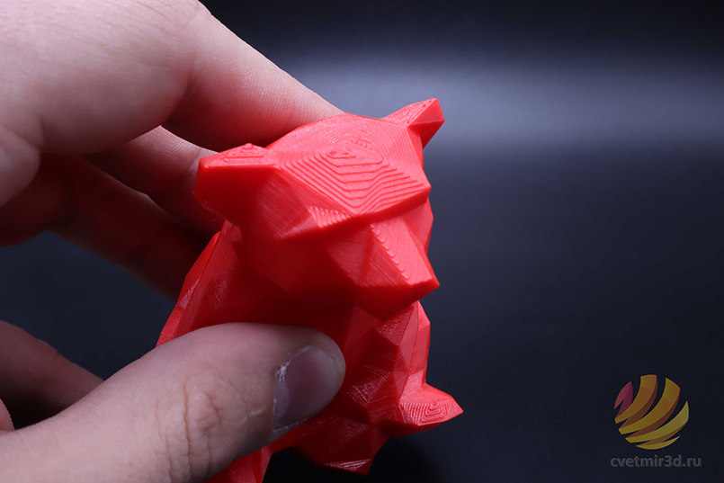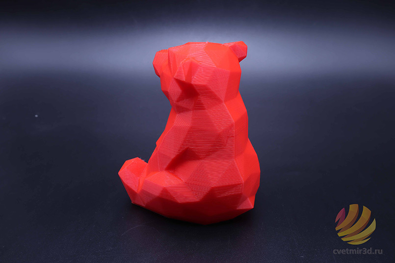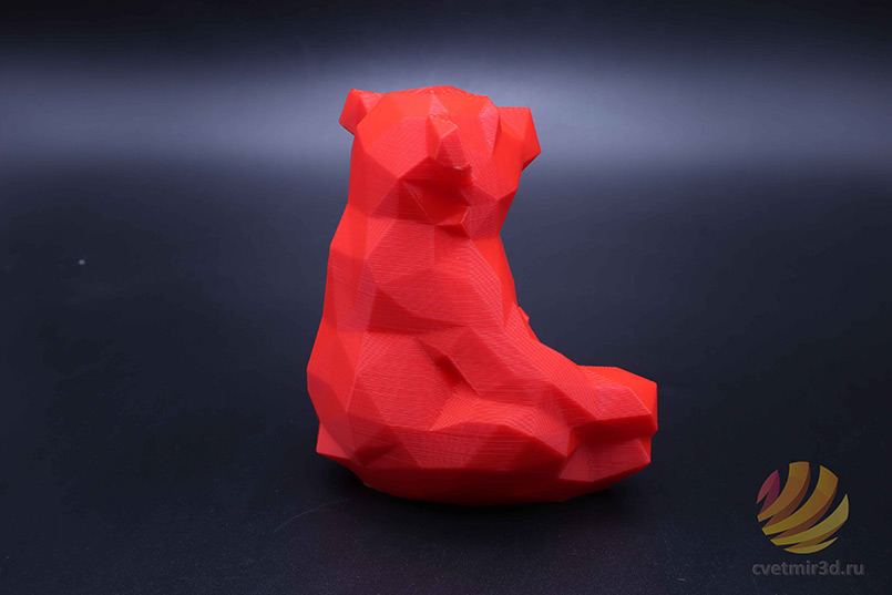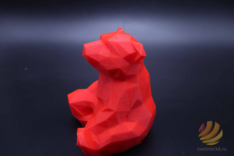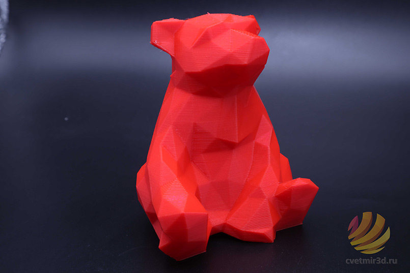 Что же, вот и настало время для первой печати. Для неё была выбрана низкополигональная, а если проще – угловатая, моделька медведя. Печатать будем из красного PLA от Poymaker слоем 0.2 мм.