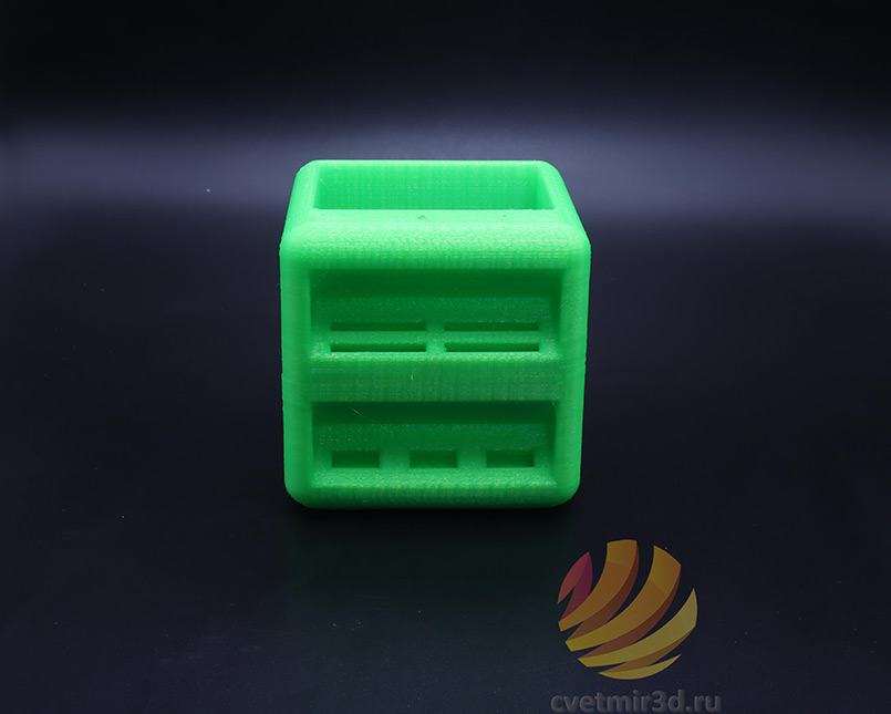 Переходим к следующим тестам. Была выбрана модель стаканчика для ручек с держателями для флешек и SD карт. Материалом послужит PETG от Tiger3D. Печатаем также слоем 0.2.