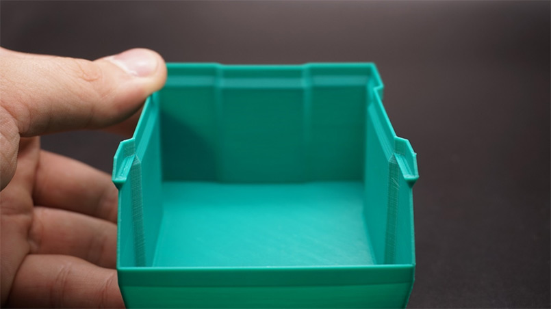 Особенностью этой модели является то, что такие ящички можно собрать в небольшую систему хранения и поэтому мы распечатали ещё несколько, надеясь также выловить проблемы с отлипанием от стола. Но нет, ни в одной из печатей не было никаких проблем с отрыванием модели. Как и обещал производитель – новое покрытие стола удерживает от отрывания даже самые сложные пластики.