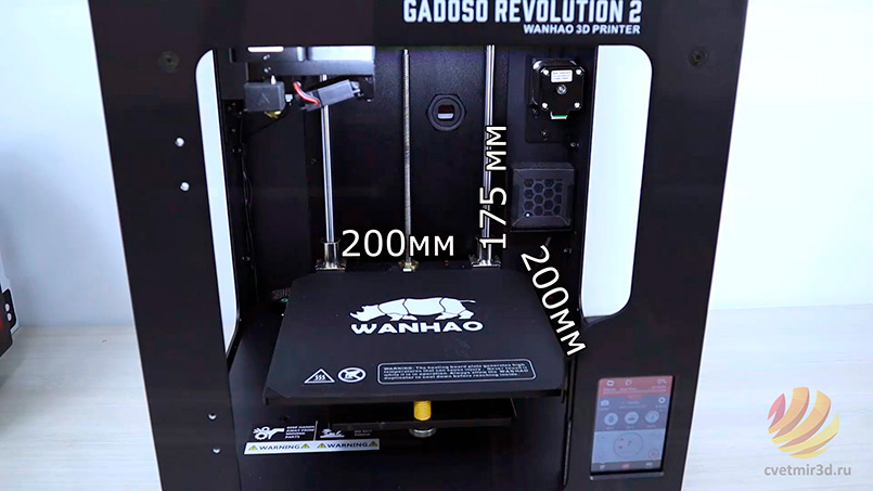 Принтер имеет довольно скромные размеры и легко поместится даже на небольшой тумбочке. Его габариты 460 х 440 х 550 мм. Область его печати не изменилась от прошлой модели и составляет 200x200x175 мм.