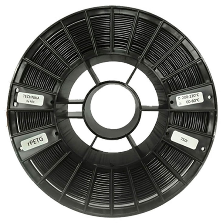 REC rPETG — это экологичная альтернатива традиционным филаментам, полностью производимая из вторичного сырья. Материал характеризуется минимальной усадкой и не выделяет запаха в процессе печати. Его текучесть несколько выше, чем у филамента REC RELAX. Однако использование переработанного сырья приводит к снижению прочностных характеристик и адгезии между слоями по сравнению с первичным PETG.