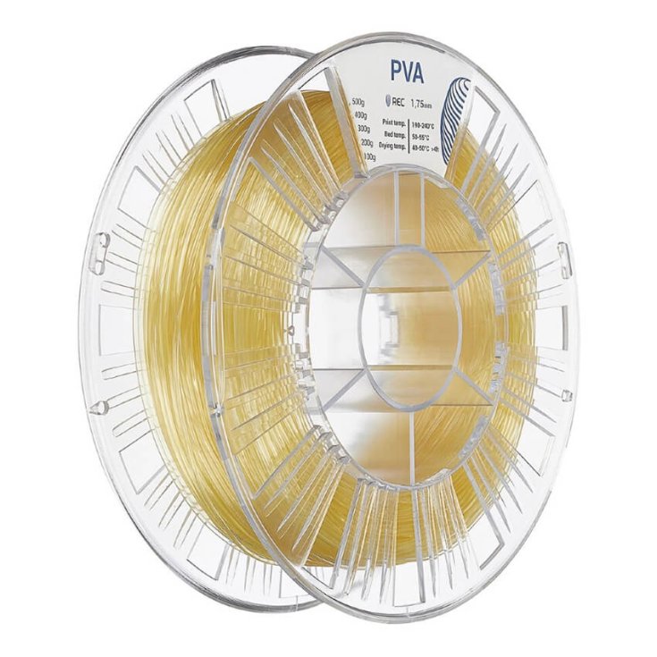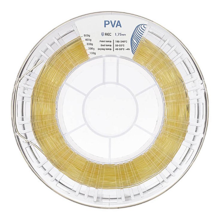 REC PVA, или поливиниловый спирт - это твердый, бесцветный и не имеющий запаха материал, нетоксичный и биоразлагаемый. Он идеально подходит для создания поддержек в 3D-печати с использованием PLA-пластика, особенно для сложных геометрических форм, поскольку впоследствии его можно легко удалить.